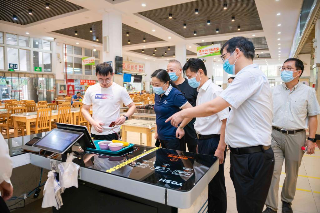 赵凌云一行先后到学校南门、西区菜鸟驿站、桂香园食堂、防疫物资存放点、东南门学生宿舍、桂中路施工现场、学生事务大厅进行专项检查,并部署秋季学期开学准备工作。