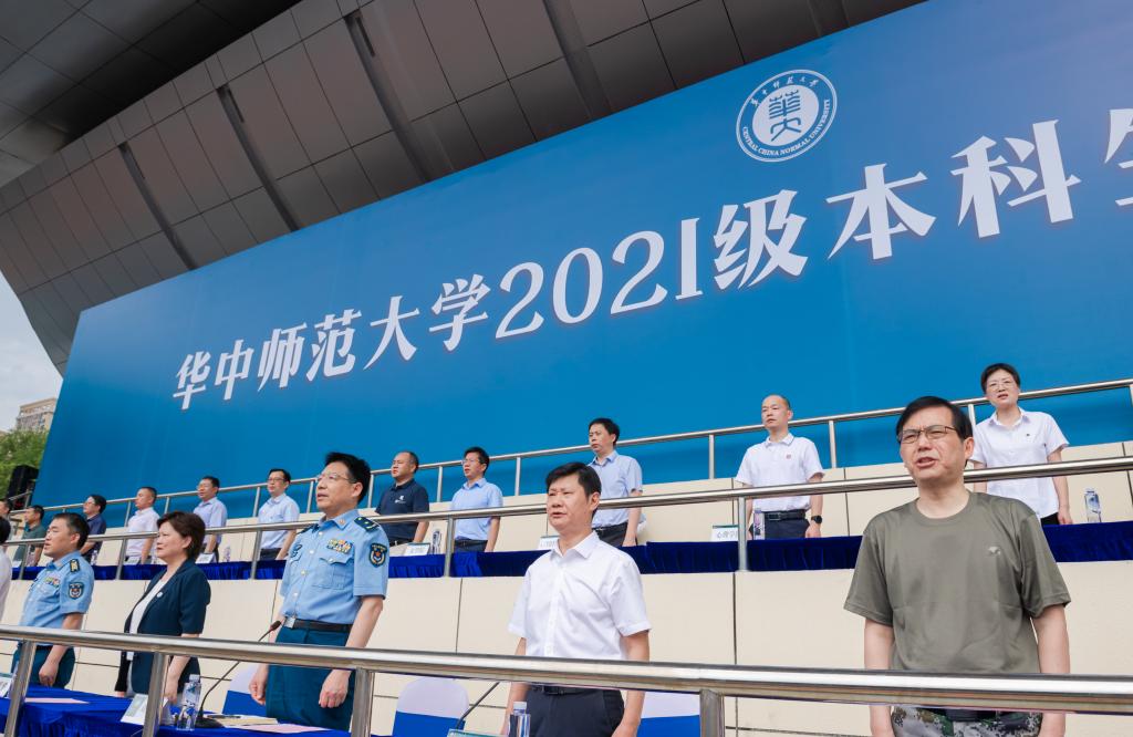 华大在线讯(通讯员 梁清媛 李欣蕾)6月23日,我校2021级本科生军训动员大会在佑铭体育场举行。中国人民解放军空军预警学院院长刘庆国、教务处处长冯德玉,校党委书记赵凌云、校长郝芳华、校党委副书记陈迪明以及学校各职能部门、各本科生培养单位主要负责人出席。空军预警学院全体承训官兵、我校2021级全体新生、参训政工干部参加。