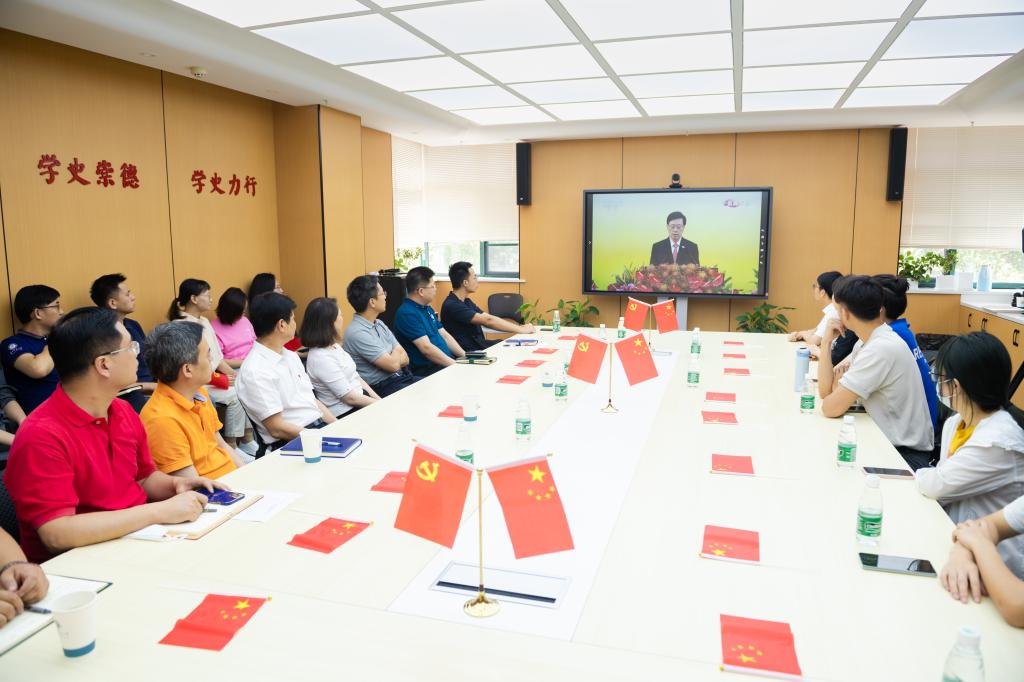 华大在线讯(记者 华轩)7月1日,庆祝香港回归祖国25周年大会暨香港特别行政区第六届政府就职典礼在香港会展中心隆重举行举行,中共中央总书记、国家主席、中央军委主席习近平出席并发表重要讲话。我校在融媒体中心会议室组织学生代表一起收看了大会直播并座谈交流。校党委书记赵凌云出席,十余名来自香港、澳门、台湾及内地的学生代表及有关职能部门负责人等参加。