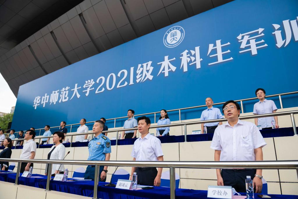 华大在线讯(通讯员 叶朦歌)7月5日,我校2021级本科生军训总结汇报大会在佑铭田径场举行。空军预警学院副院长孙合敏大校、校党委书记赵凌云、校长郝芳华、校党委副书记陈迪明出席。全体2021级本科生、各培养单位、相关职能部门主要负责人等参加。