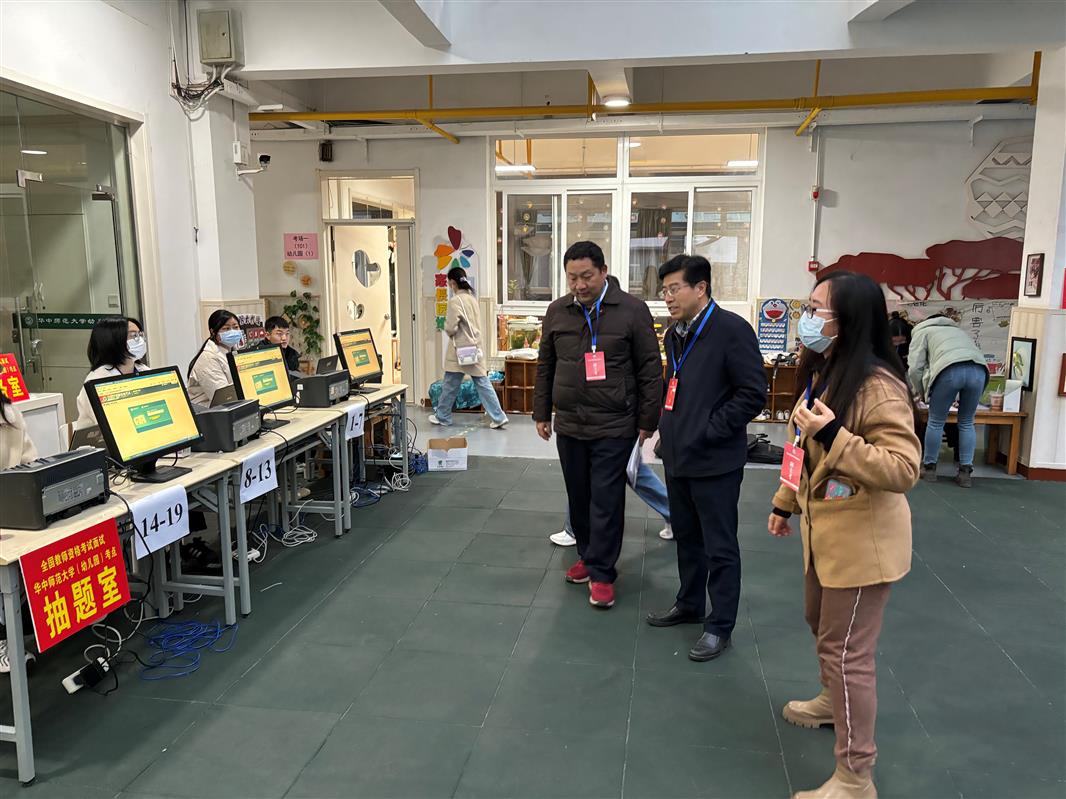 副校长彭双阶,本科生院、教师教育学院相关领导对考试工作进行指导和检查,要求全体考务人员明确岗位职责,严肃考风考纪,切实履行职责,维护国家考试的公正公平。