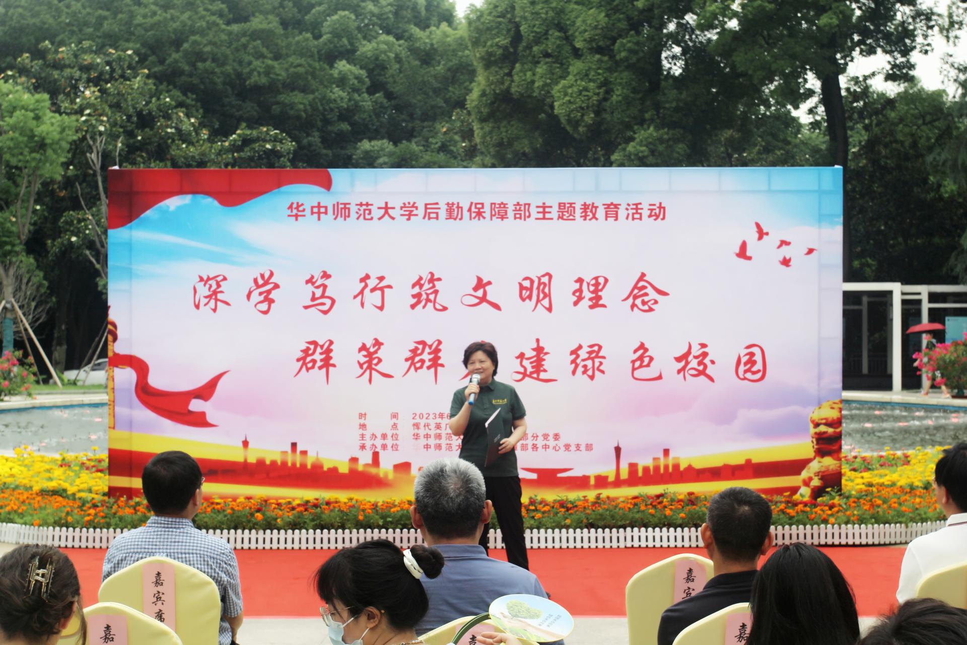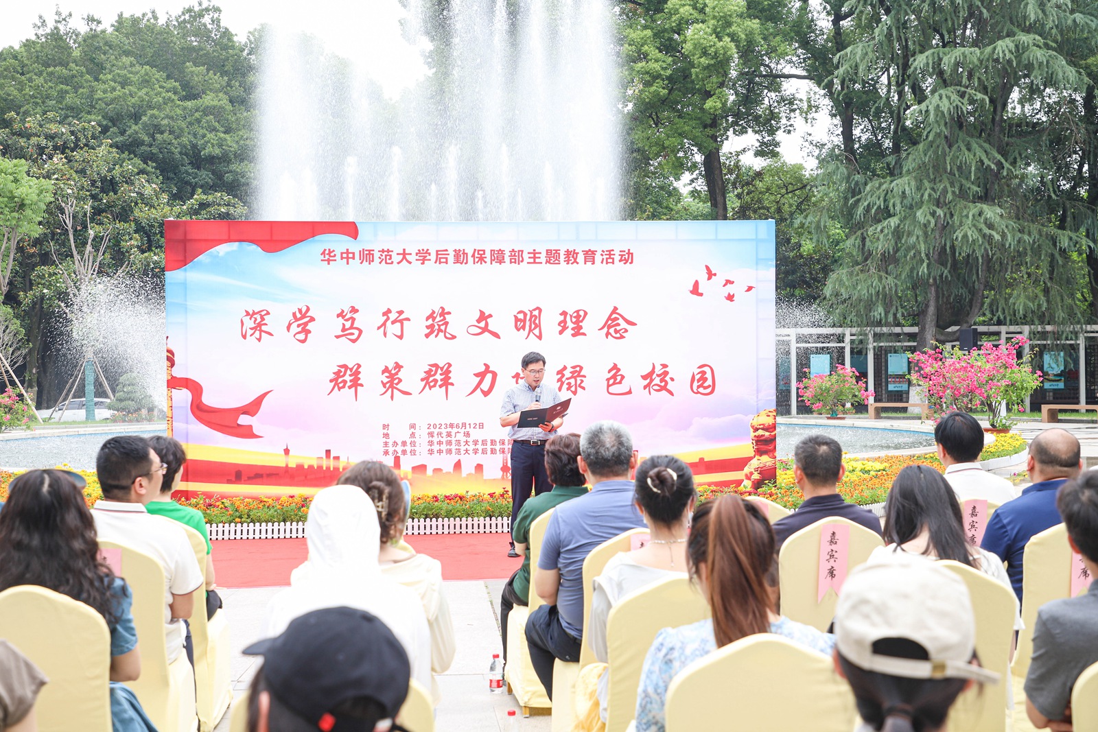 华大在线讯(记者 郝日虹)6月12日,后勤保障部分党委主办的“深学笃行筑文明理念,群策群力建绿色校园”主题教育活动在恽代英广场举行。校党委书记夏立新、校长郝芳华、副校长任友洲出席。本次活动旨在深入推进主题教育,深学笃行习近平生态文明思想,进一步加强文明、安全、节能、环保的绿色校园建设。