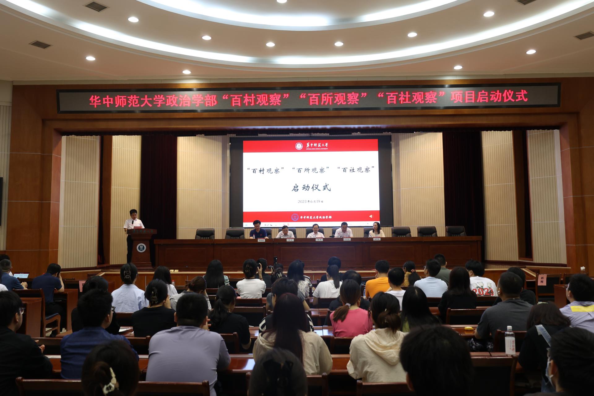 华大在线讯(记者 曾楚航 关国樑)6月19日,政治学部“百村观察”“百所观察”“百社观察”(“三百观察”)项目启动仪式在科学会堂一楼报告厅举行。政治学部部长徐勇出席,各项目负责人及全体调研员参加启动仪式。