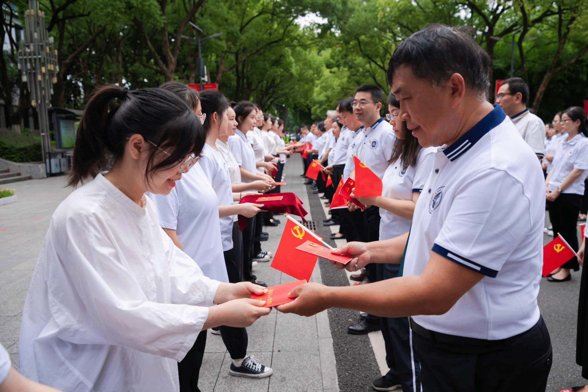 任友洲与学院教师党员代表为学院17名新发展党员代表颁发党章和党员徽章