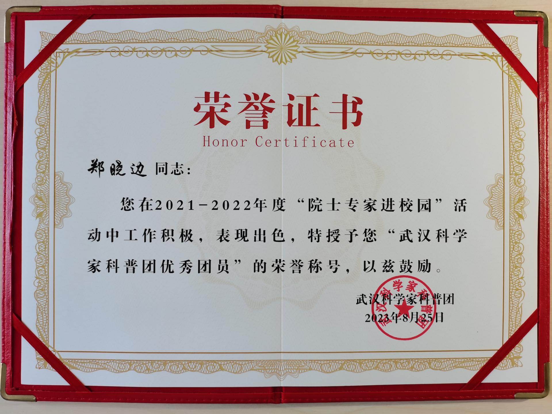 华大在线讯(通讯员 陈叶文)8月25日在武汉科学普及研究会第三届理事会第一次会员代表大会上,我校心理学院老教授郑晓边当选理事,并荣获2021-2022年度“武汉科学家科普团优秀团员”。