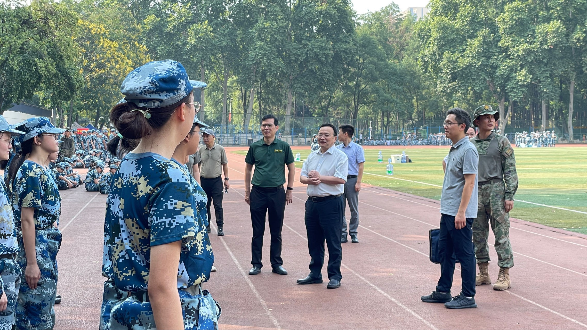 华大在线讯(通讯员 吕建平 李哲立9月11日,校党委书记夏立新、校党委副书记陈迪明前往佑铭体育场、南湖田径场看望慰问2023级军训学员、教官及参训干部,观看2023级军训队列训练,与现场带训教官、参训学员、政工干部进行亲切交流,详细了解军训进度、训练科目、后勤保障等情况。