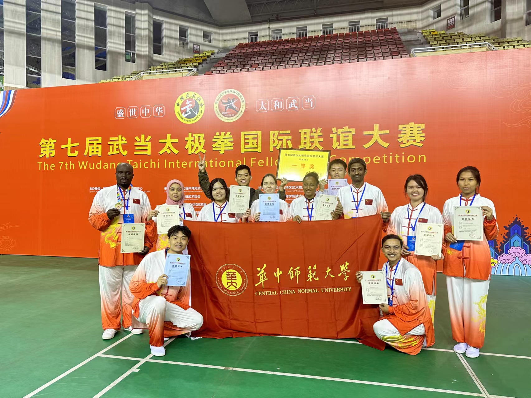 我校国际学生武术队在大赛中秉承“野蛮其体魄,文明其精神”的尚武精神,经过三天角逐,荣获佳绩。其中,缅甸等五国国际学生6人在团体赛项目八法五步中荣获一等奖;布隆迪博士研究生马波(MAGABO JACQUES)荣获个人赛24式太极拳三等奖。来自俄罗斯、斯里兰卡、马来西亚等国学生也积极参与,展现了华师国际学生的风采和对中华传统文化的热爱与坚持。