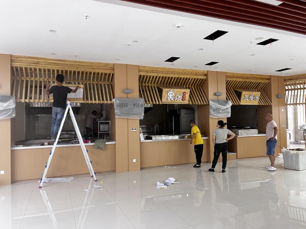 为推进沁园春综合体顺利开业,饮食服务中心班子与中商连锁公司凝心聚力,全员加班加点。为了加快沁园春综合体开业进度,后勤保障部相关负责人多次召集饮食中心和中商连锁公司相关负责人现场会议,统筹协调,帮助联合服务企业顺利开展工作。饮食服务中心联合基建处到现场对综合体装修改造设计图进行审核,对后厨改造图纸报送洪山区审批局进行审核。饮食服务中心在严把施工安全的同时,狠抓施工质量,保证施工进度,确保秋季顺利开业,为全校师生提供更多更便捷的生活服务。