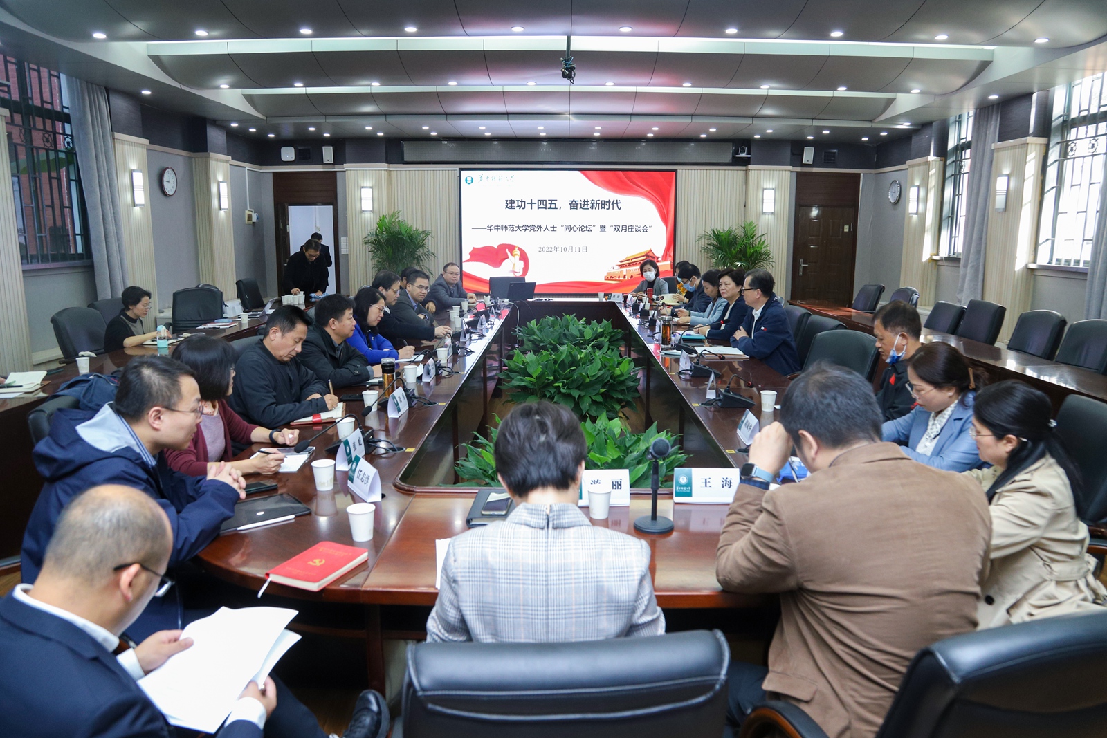 华大在线讯(记者 李嘉瑶 见习记者 曾楚航)10月11日,党外人士“同心论坛”暨“双月座谈会”在行政楼一楼会议室召开。校长郝芳华、副校长彭南生出席。我校各级人大代表、政协委员、政府参事,各民主党派主要负责人及骨干,无党派人士代表以及学校相关部门负责人围绕“建功十四五,奋进新时代”主题,畅所欲言,建言献策。座谈会由彭南生主持。
