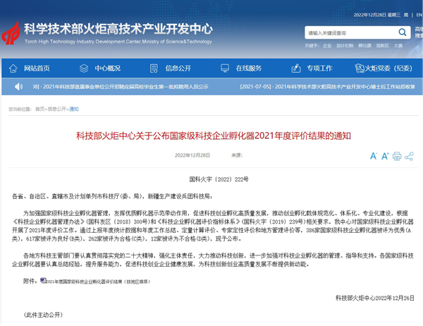 科技部火炬中心要求,各国家级科技企业孵化器要认真总结经验,提升服务能力,促进科技创业企业健康发展,为科技创新创业高质量发展不断提供新动能。