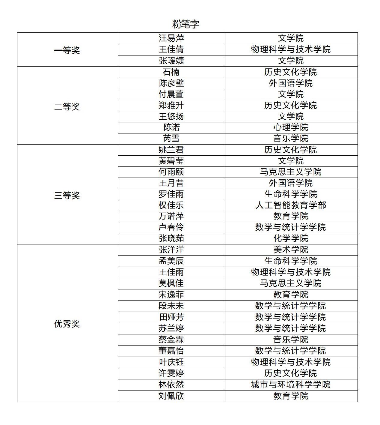 华大在线讯(记者 洪臻祎 见习记者 李思彤)4月21日,我校“第十六届师范生专业技能大赛·书写技能比赛”在国家教师发展协同创新实验基地智慧书写教室举行。经过15个师范专业学院的选拔,140名师范生来到决赛现场展开角逐。最终,文学院乔丽瑜等4名选手获得钢笔字书写一等奖,物理科学与技术学院王佳倩等3位选手获得粉笔字板书设计一等奖。
