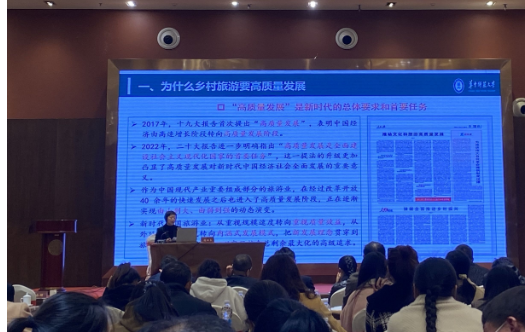 揭牌仪式后,城市与环境科学学院谢双玉教授作“推动乡村旅游高质量发展”专题宣讲。黄陂区农业、景区企业负责人就“持续放大‘木兰游’品牌效应”“打好农文旅融合‘组合拳’蹚出乡村振兴新路子”等话题开展交流。