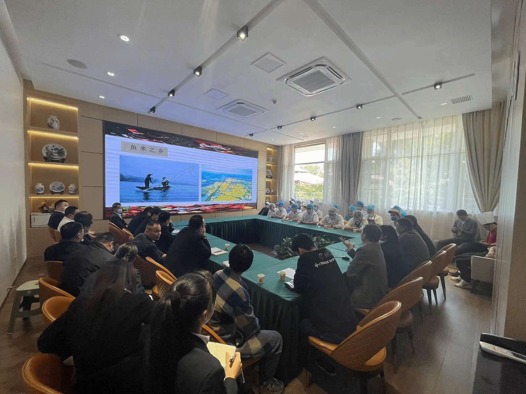 我校湖北楚菜研究院特聘研究员、武汉大学中国传统文化研究中心研究员方爱平教授,以图文并茂的课件形式为大家讲解了楚菜的历史、楚菜的特点以及十大楚菜菜品,并为学校食堂的楚菜制作提供了宝贵的具体指导意见。