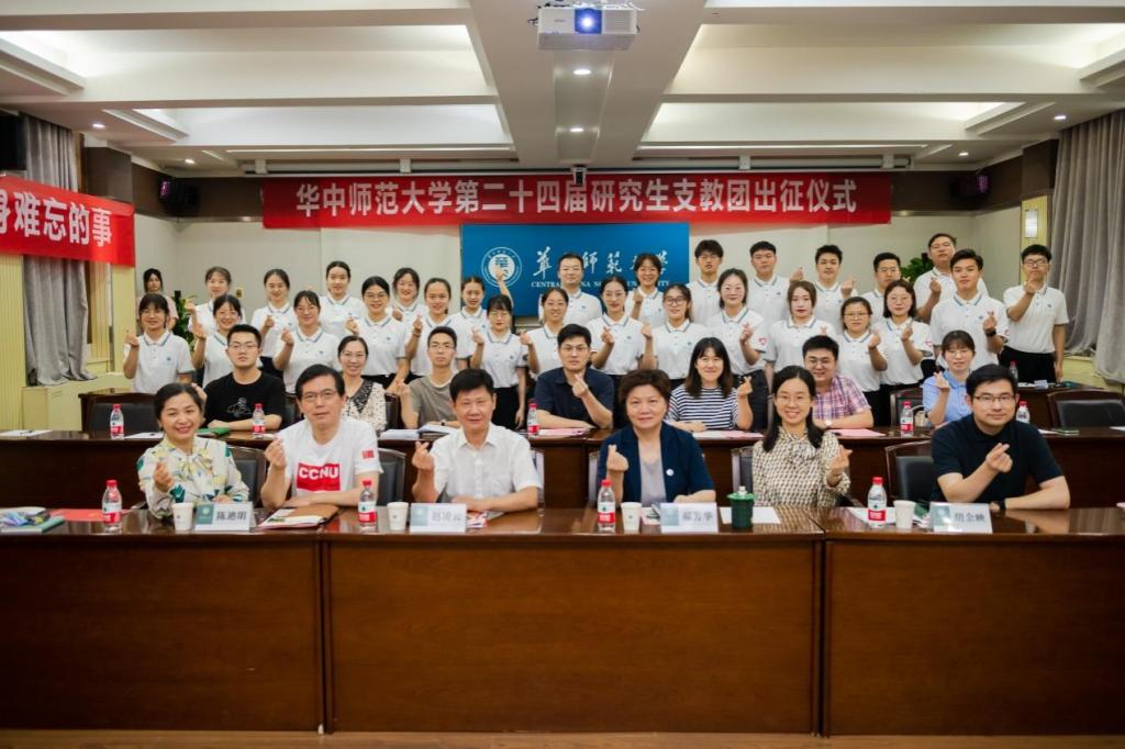 华大在线讯(通讯员 卢俊霖)6月14日,第24届研究生支教团出征仪式在行政楼二楼会议室举行。校党委书记赵凌云、校长郝芳华、校党委副书记陈迪明出席。相关职能部门负责人及第24届研究生支教团成员参加。