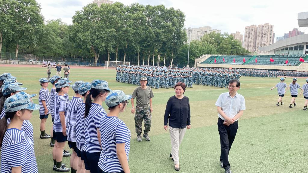 华大在线讯(通讯员 吕建平)6月27日,校长郝芳华、校党委副书记陈迪明前往佑铭体育场、南湖田径场看望慰问2021级军训学员、教官及参训干部,观看2021级军训队列训练,与现场带训教官、参训学员、政工干部进行亲切交流,详细了解参训人数、训练科目、军训进度等情况。