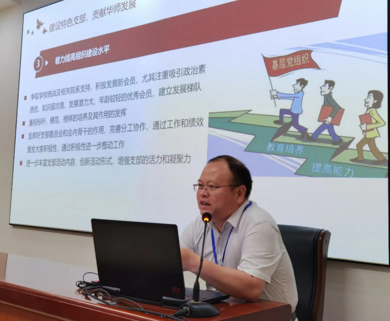 郑文升通过讲述民建与中国共产党密切合作和民建早期领导人黄炎培与毛泽东在延安的“窑洞对”等历史故事,展示民建自始至终与中国共产党风雨同舟、相濡以沫。他还介绍了我校民建的发展情况以及在参政议政、组织建设方面取得的成绩,并表示,将带领民建全体成员“矢志不渝,以党为师、向党学习,将民建支部建为华师参与湖北多党合作重要载体”。