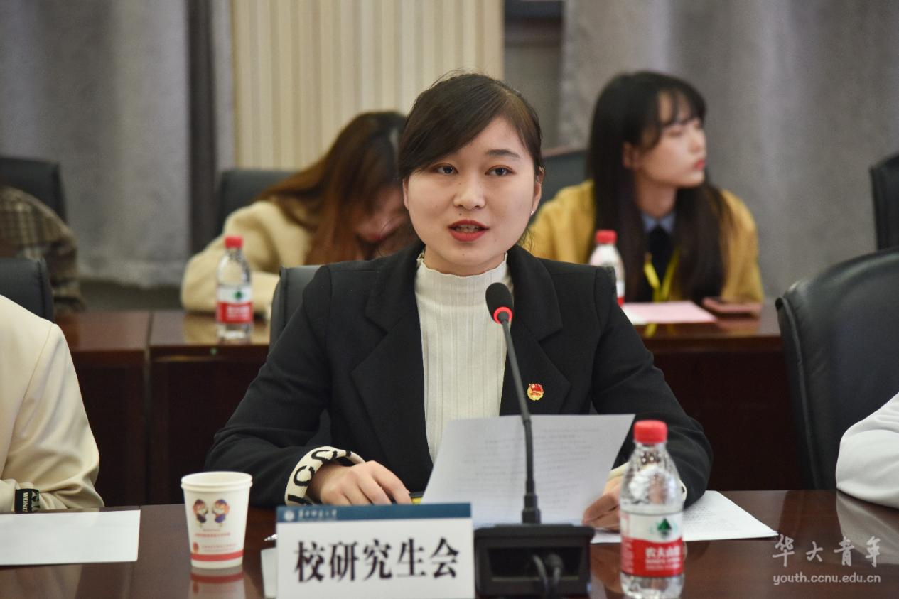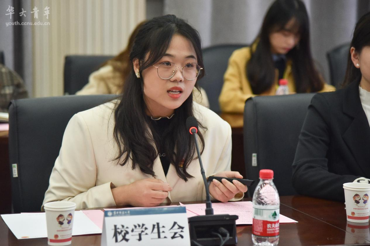 校学生会主席团成员周海倩表示,学生会将始终秉持“办实事”的初心使命,服务同学们的思想成长、精神文化、校园生活、全面发展等各方面需求。校研究生会主席团成员葛玥谈到了校研会通过促进导学关系、开展学术论坛、反馈生活意见、创新社会实践等系列品牌活动服务华研学子的相关探索。校学生社团指导中心主席团成员段雅芳建议学校进一步激活校内教室在非教学时段的社团活动功能,提升社团活动专项经费额度,尽快建立社团指导老师激励机制。