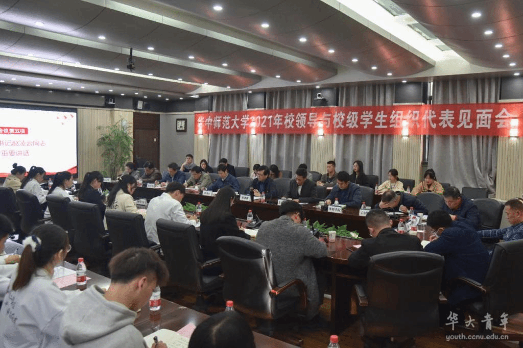 华大在线讯(通讯员 卢俊霖)11月26日,我校2021年“校领导与校级学生组织代表见面会”在行政楼一楼会议室召开。校党委书记赵凌云、校党委副书记陈迪明以及学校相关职能部门负责人与校学生会、研究生会、学生社团指导中心骨干成员进行座谈交流。见面会由陈迪明主持。