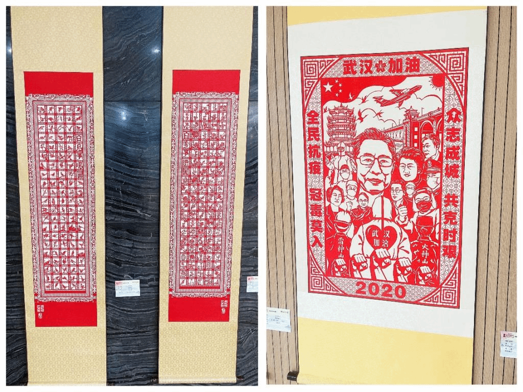 具有浓郁楚文化特点的代表性非遗项目“武汉剪纸”是以刀剪代笔,剪刻并施,使用剪刀、雕刀极为考究,善用适形构图和点题文字来表达内容,既有北方剪纸的浑厚、粗放又有南方剪纸的灵秀和纤细。“武汉剪纸”的传承人沈松柏,将他的诸多代表性作品带到了现场,刻画精细的《百鸟图》,展现时代情怀的《魅力武汉系列》等,无不彰显出大师的高超技艺和家国情怀。