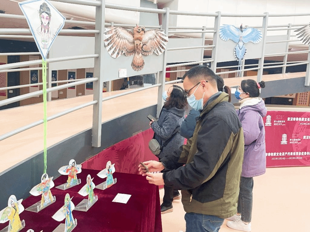 栩栩如生的泥塑、具有地域美术风采的楚风布画、国粹经典的京剧脸谱、独具匠心的砚雕,以及毛线编织画、篾扎风筝、传统插花等众多极具艺术欣赏价值的非遗代表作品静候观者们的到来。