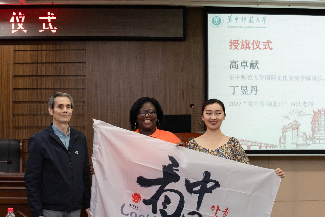 高卓献为指导老师代表丁昱丹授旗,并宣布“2022看中国-外国青年影像计划·湖北行”开机启动