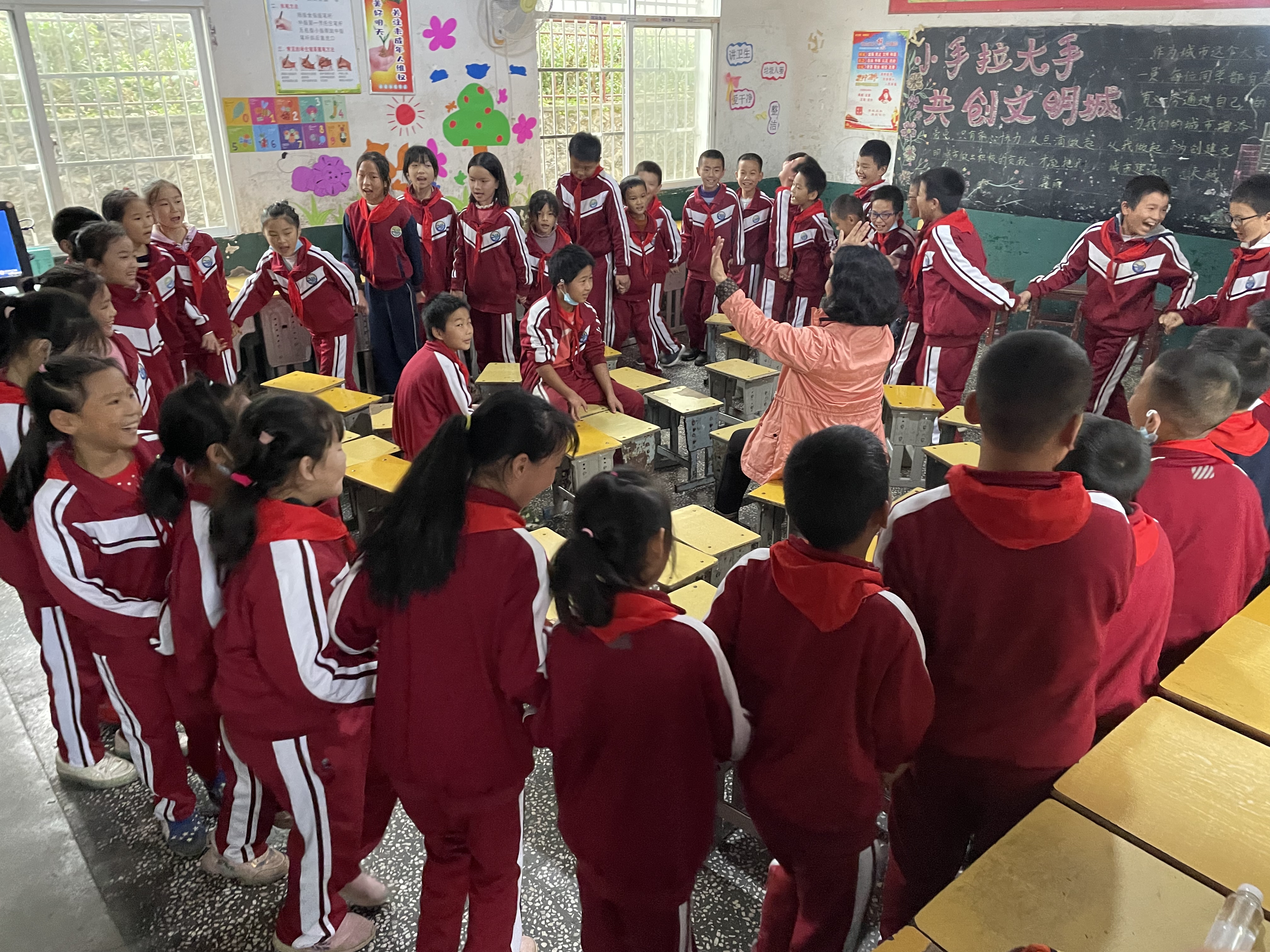 启动仪式后,民盟华师委员会委员、体育学院龙春晓副教授带领盟员们为金鸡山小学的同学们开展了啦啦操教学、音乐艺术素质课、钢琴声乐课教学。课后,民盟华师委员会全体委员与金鸡山小学教师举行了座谈,面对面沟通交流,深入了解了乡村小学在素质教育上的困难、教师关于优质教学的需求,共同探讨和谋划了今后在建立“对口帮扶”的基础上做好艺术素养、体育素养、科学素养等教育工作。