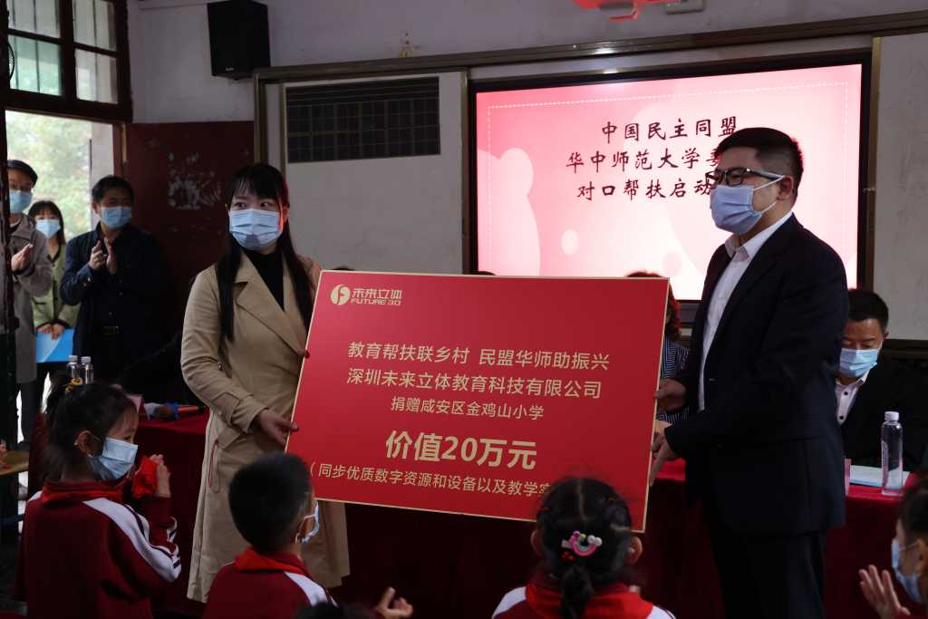 活动期间,深圳未来立体教育科技有限公司、中国银行武汉东湖新技术开发区分行分别为金鸡山小学捐赠了价值20万元的教学设备与17套教学乐器。