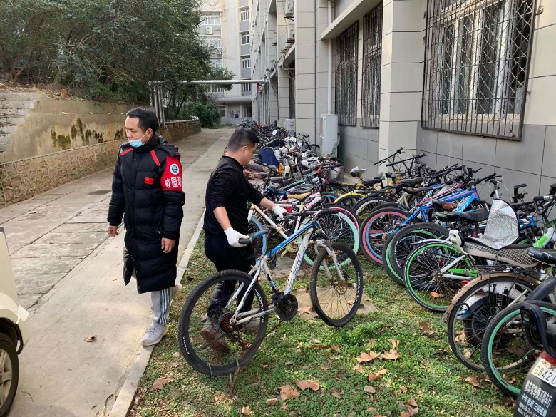为了营造良好的校园环境,让全校师生度过一个祥和温馨的春节,保卫处遵循“以人为本、服务师生”的工作原则,按照“培育‘秩序文化’,建设‘文明校园’”的工作理念,利用寒假时间,对分散在校园各处无人认领、积灰已久的自行车和电动车进行登记,并作集中处理。