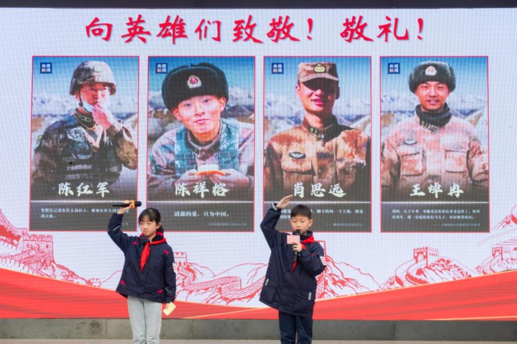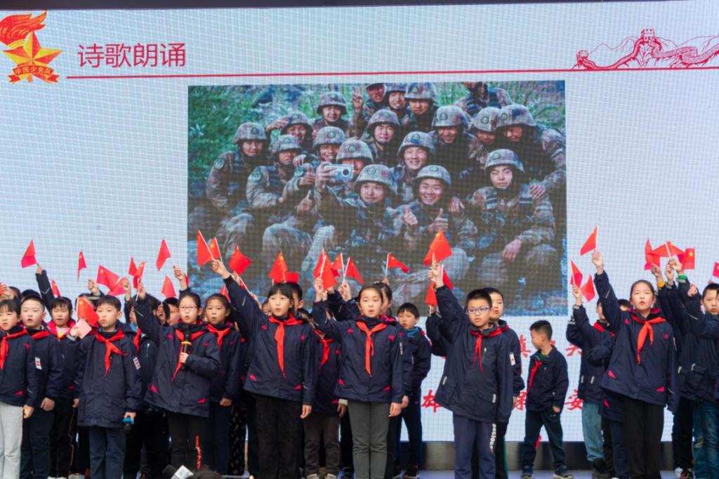 “我们就是祖国的界碑,脚下的每一寸土地,都是祖国的领土。”来自403中队的主持人张大桐深情说道。怀着对戍边战士的敬意,403中队的高知行、吴芷涵、吴思远、彭刘艺博四位同学为大家讲述了陈祥荣、陈红军、肖思远、王焯冉四位战士与边疆的故事,展现他们身上对祖国的忠诚与对疆土的坚守。