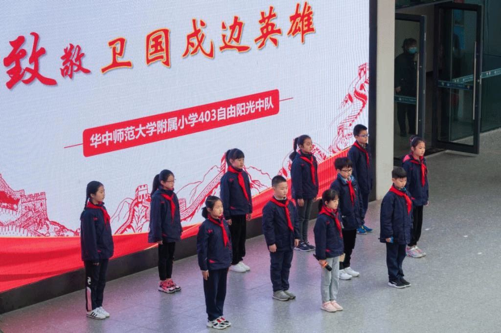 华大在线讯(通讯员 唐从义)3月29日,“学百年党史 做时代先锋”国旗下微展示活动在华师附小举行。同学们在国旗下“致敬卫国戍边英雄”,更加珍视和平生活的来之不易。