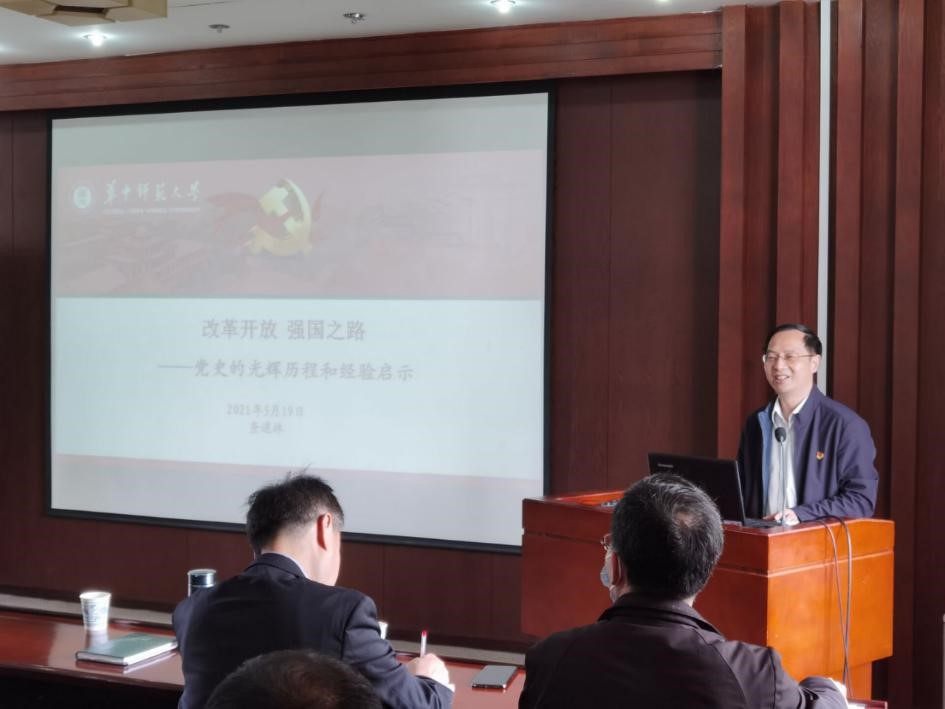 华大在线讯(通讯员 史计策 孙煜林)5月19日下午,校党委副书记查道林在逸夫化学楼501报告厅,以《改革开放,强国之路——党史的光辉历程和经验启示》为题,为化学院学院师生党员、分管职能部门班子成员及所在支部宣传部支部全体党员上了一堂别开生面的专题党史课。