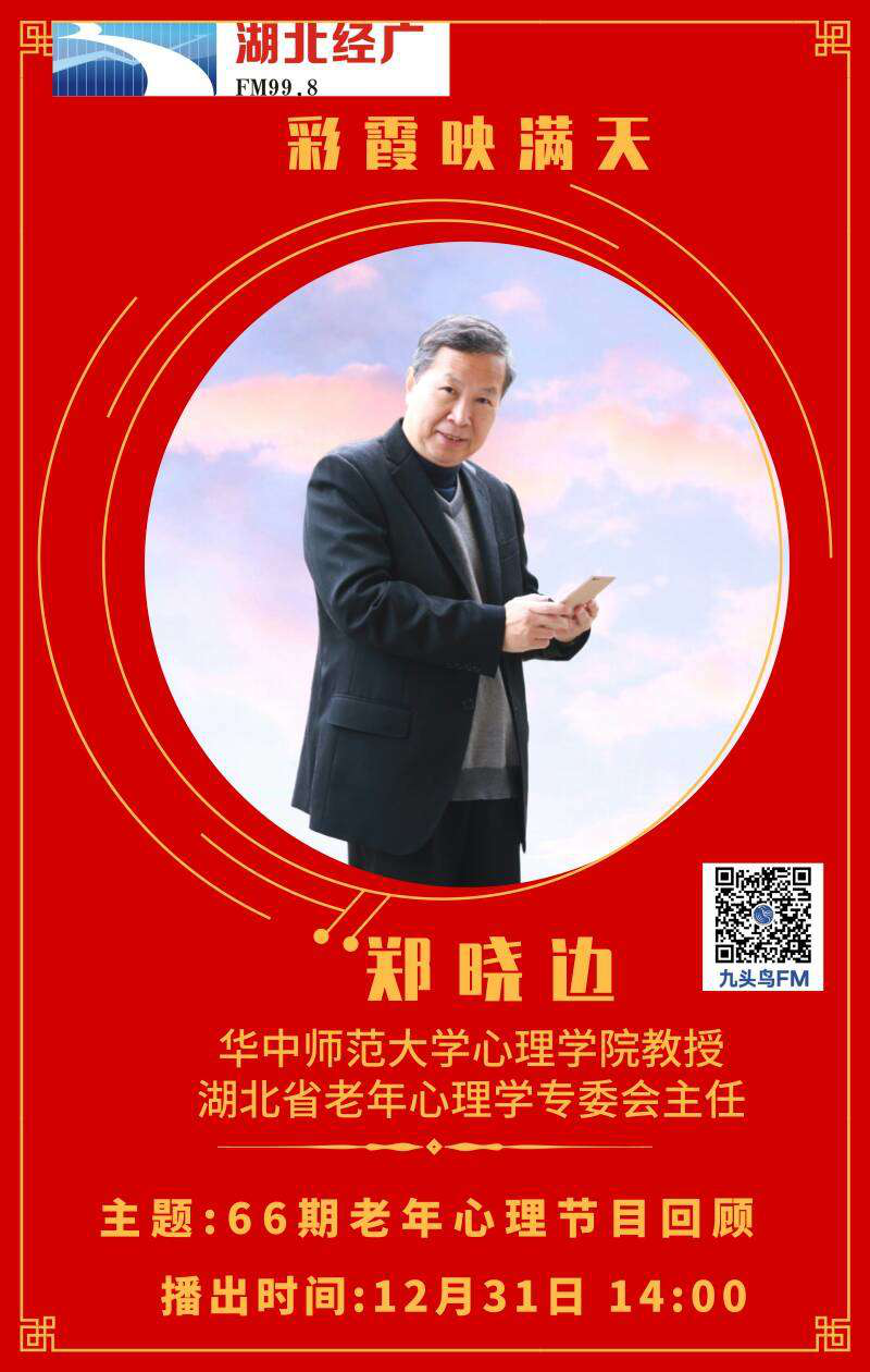 武汉封城后,在湖北经广电台上创编了《彩霞映满天提升幸福力》心理访谈栏目的郑晓边教授把广播电视台当做了自己抗疫的主阵地,通过电波传递着温暖的心理支持。为了帮助长时间处于封闭的空间里、接收着各种负面消息的老年朋友们,潜心钻研老年心理学的郑教授在《彩霞映满天提升幸福力》心理访谈系列节目中,针对居家老人在新冠疫情的应激条件下,求医问诊、社交支持等身心需求增加的现象,设计了与老年家庭的抗疫能力建设相关的主题,给老同志们提供必要的心理帮助,帮他们建起提高免疫力和康复力的心理防线。今年5月起,郑晓边教授又带领湖北省老年心理学专委会团队与省广播电视台《老年天地》全媒体空中课堂合作,开启“后疫情时期”老年人心理保健专栏的新节目,通过更专业化的主题,帮助老年人加速心理康复,走出疫情阴影。