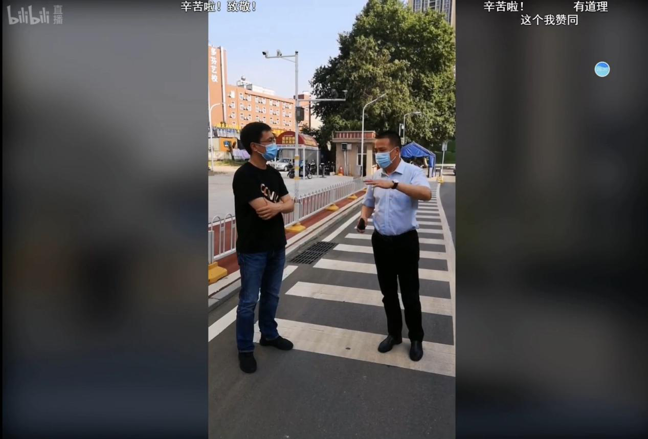 离开了南湖校区,主播从主校区的南门进入,寻找下一位讲述者——保卫处处长王东爽。王东爽向同学们展示了学校最新的门禁系统,并与同学们分享了疫情防控期间保卫处的工作情况:作为学校疫情防控的第一道关口,全校142位保安与保卫处61名干部职工第一时间响应学校防疫需求,奔赴一线,很多人自大年三十起就驻扎在岗位上,近100天没有休息过。