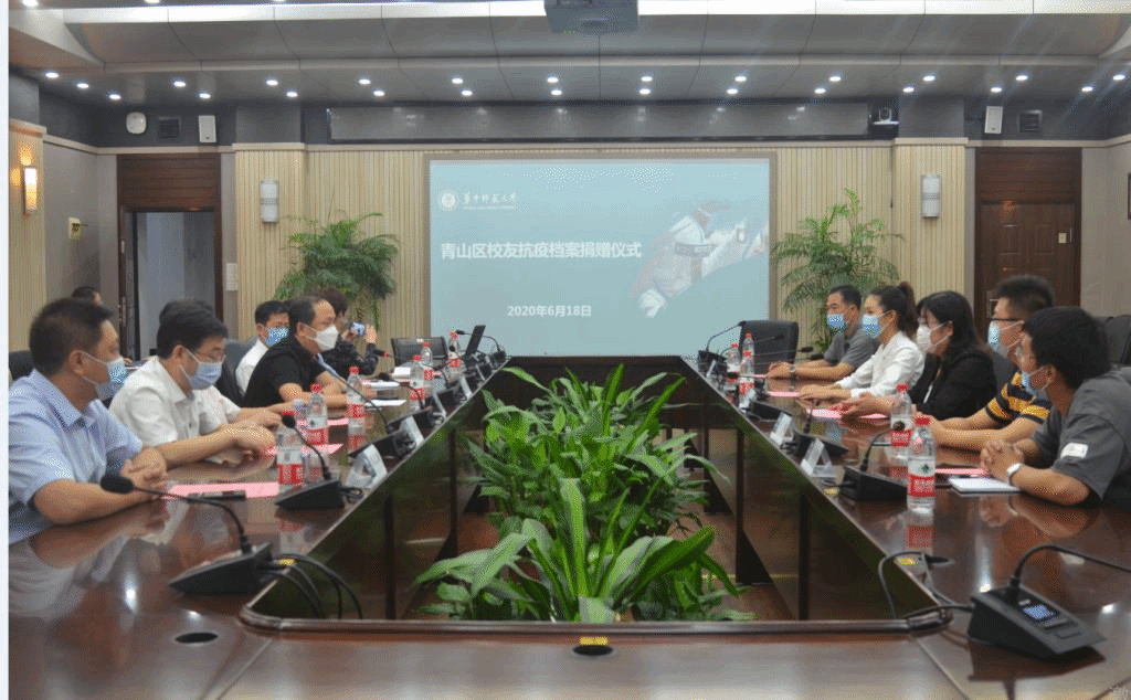 华大在线讯(通讯员刘婧)6月18日,五位亲身参与抗疫的校友惠玉、华雨辰、吴洪俊、罗强、王赛代表青山区教育系统向学校捐赠抗疫档案。副校长彭南生代表学校接受捐赠,并为他们颁发捐赠证书。