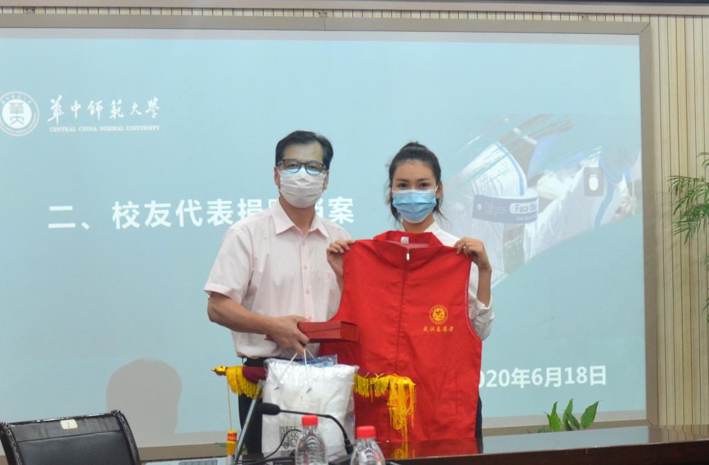 捐赠仪式上,青山区教育局副局长惠玉介绍了华师人在武汉市青山区抗疫中的责任与担当。作为我校中文系1993届毕业生,她为那些在区防控指挥部、方仓医院、社区、高速路口等奋战在抗疫前线的华师人感到骄傲。被誉为“全能型志愿者”的华雨辰将自己的志愿服、体温枪、通行证等全套抗疫档案捐给了档案馆。她非常感谢母校和音乐学院的培养,“尽管已毕业8年,但‘忠诚博雅、朴实刚毅’的华师精神早已烙在心间。”