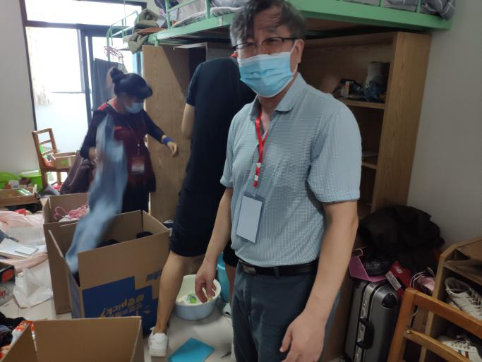 高秉雄教授是学院教师志愿者服务队中最年长的,也是最积极的,不管是整理东西还是扛重物,他都冲在最前头。有时候年轻老师怕他太累,“抢”过手中的活,他也不会坐下休息,而是继续忙别的事情。看着整理干净的宿舍和打包整齐的行李,高秉雄为自己能够帮到学生而快乐。