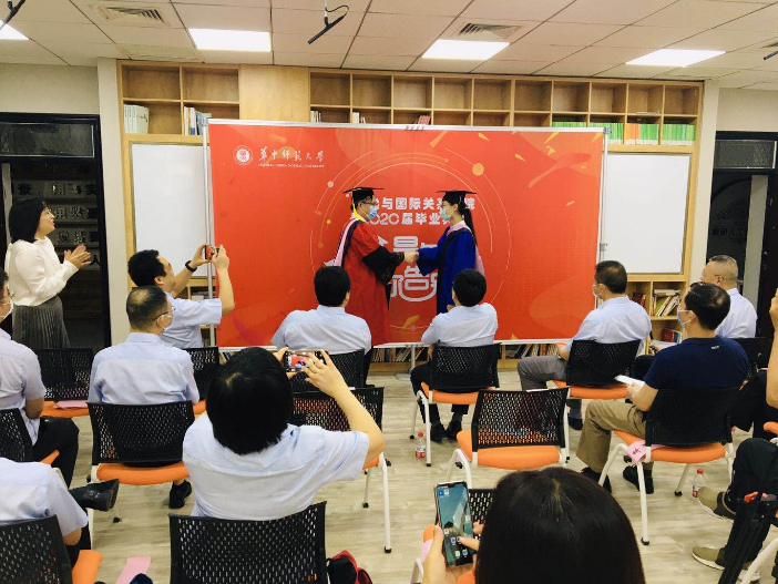 此外,为做好疫情防控常态化下的毕业生离校工作,6月19日上午,学院通过哔哩哔哩直播平台举行了线上毕业典礼暨学位授予仪式。典礼中特别设置了“云拨穗”环节——身在家中的毕业生身着学位服由家长代为拨穗,并播放拨穗实况。全院教师在镜头前一一与毕业生挥手道别,寄语毕业。