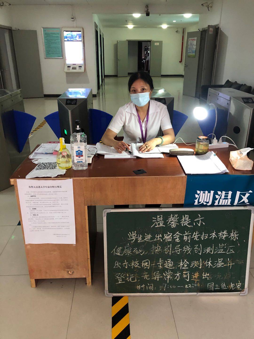 最近正值毕业返校的季节,庞大的返校生数量使余文变得更加劳累了。从晨起迎接新生的朝霞,到傍晚送走落日的余晖,余文不断地重复着消毒、体温测量、出入登记这几项工作,几乎是片刻也停不下来。但她也只是用“累一点”、“忙一点”来轻轻带过。不能返校的学生毕业答辩急需学科资料,余文仔细整理好,一张张拍照发送。有位学生事后给她发来了微信,“我在华师读书十年,你是我碰过最温暖、最好的阿姨。”