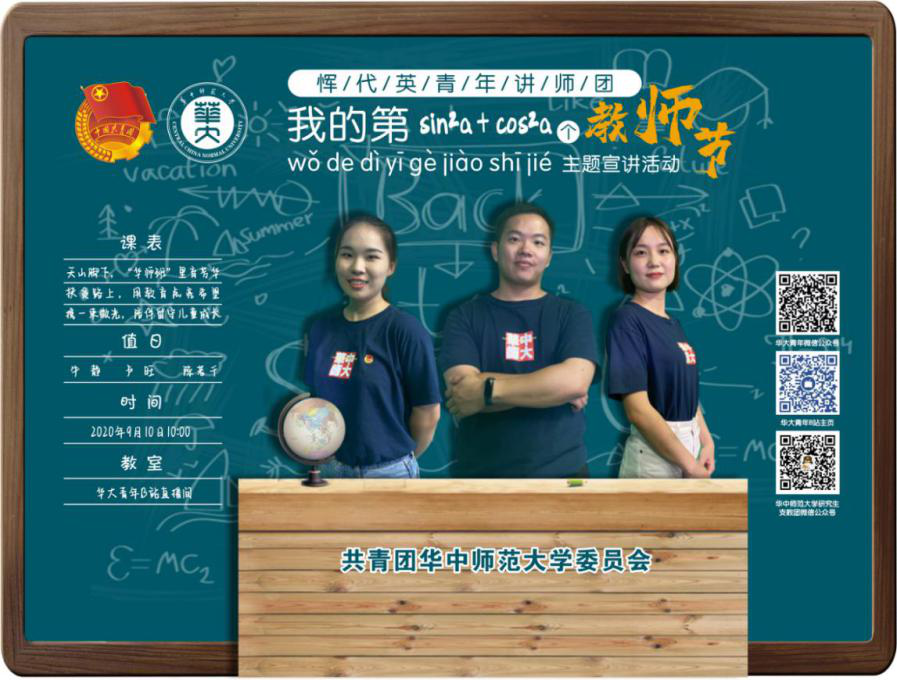 华大在线讯(通讯员 黄祥瑞 卢俊霖)时值第三十六个教师节,为大力弘扬尊师重教传统,构建新时代尊师文化,鼓励更多青年学子投身教育事业,激励广大教师和教育工作者“不忘立德树人初心,牢记为党育人、为国育才使命”,华中师范大学恽代英青年讲师团推出“我的第一个教师节”主题宣讲,结合学校研究生支教团支教工作经历,分享支教中的感人故事,为全体教职员工、为未来即将走上教师岗位的同学、朋友们送上一份来自青年人、来自支教团的节日礼物。