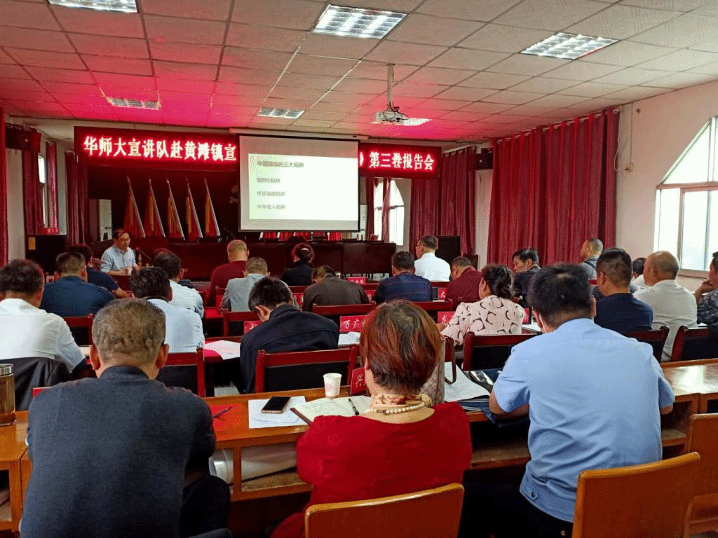 徐秉国副教授在黄滩镇进行《新时代中国共产党的思想旗帜——学习<习近平谈治国理政>(第三卷)的体会》专题报告,全镇机关干部、各村(社区)支部书记、镇各单位负责人约90人聆听了宣讲。
