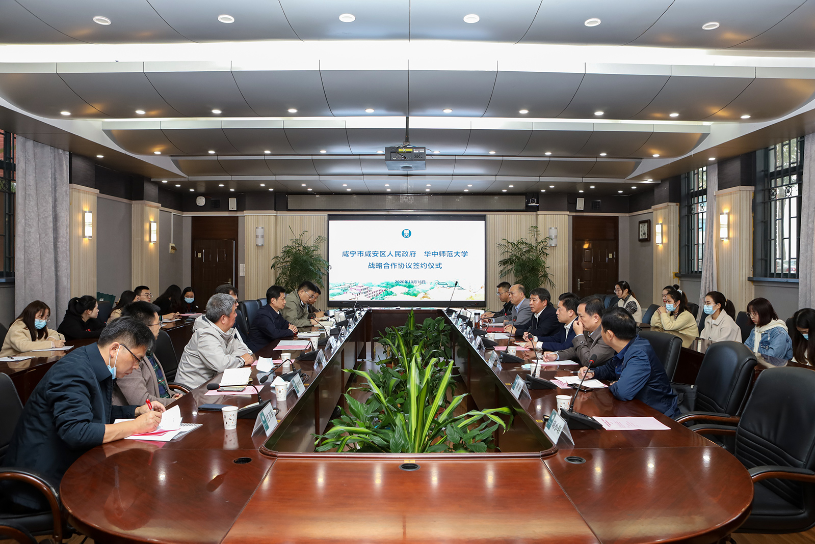 华大在线讯(通讯员 胡依然)10月16日,我校与咸宁市咸安区人民政府战略合作协议签约仪式在行政楼一层会议室举行。校党委书记赵凌云、副校长彭南生、咸安区委书记李文波、区委常委万龙出席,相关职能部门负责人参会。会议由彭南生主持。