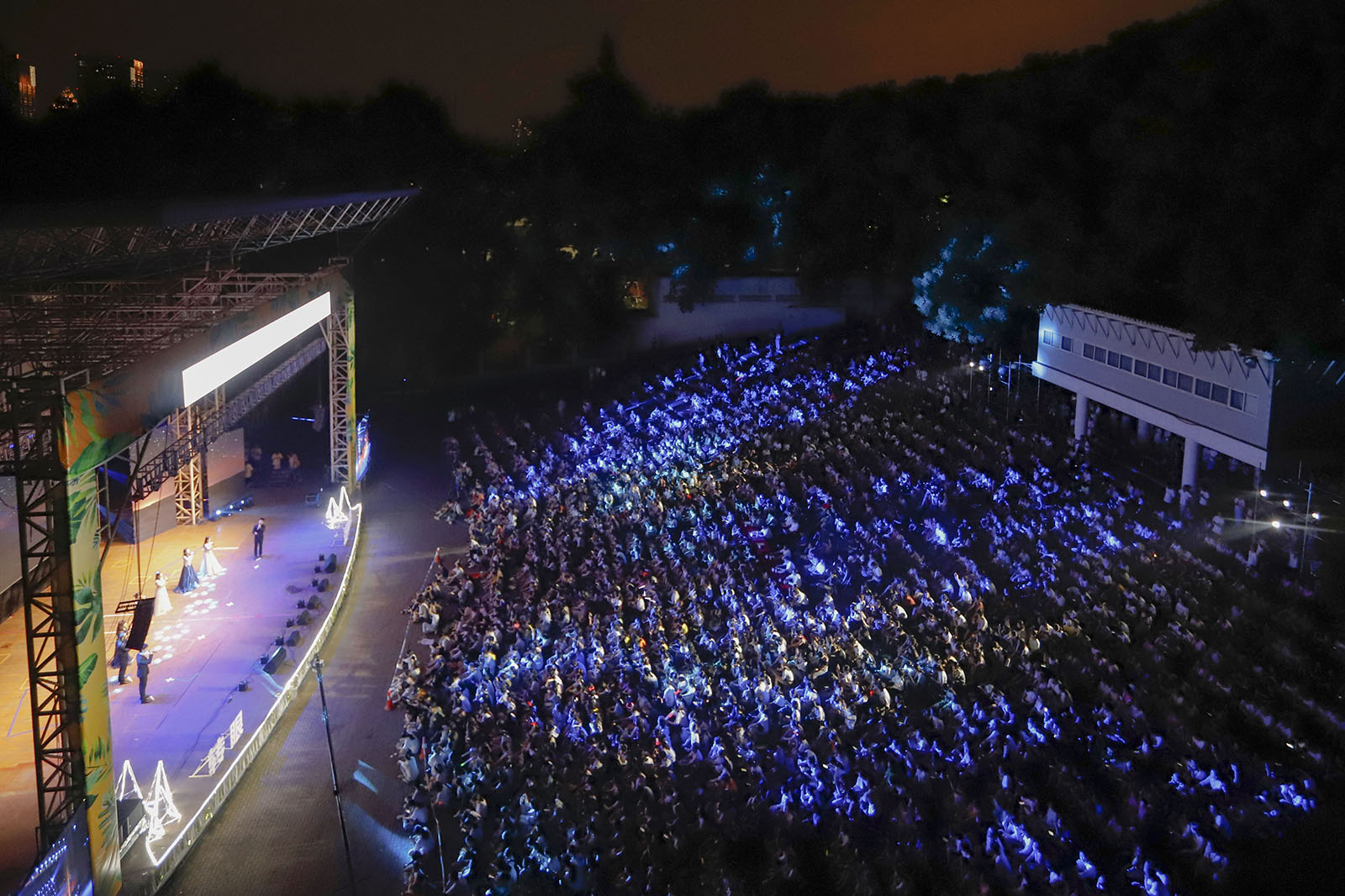 “艺术是一种修行,热爱是最好的天赋。”音乐学院刘胜昌老师如是说。一首《敢问路在何方》让在场观众回归经典,亦回忆起温暖的师生情缘:青春里以友情为伴,以良师为友,正是因为追梦不停,才让一路上多了许多爱与温情。合唱《我爱你中国》意义深远,让现场观众情不自禁地起立跟唱,爱在华师,华师学子将这份爱传承并带到五湖四海。这些年,桂子山的支教团、留学生、国旗护卫队和少数民族等无数奉献者们,用自己的行动昭示着、也用理想指引着身边人。最近新上映的电影《最好的我们》在华师多处取景,超级新声选手向星羽、胡浩淼的歌曲串烧再现了多部青春校园剧的场景。毕业旅途中少不了家人的陪伴,《请你慢一些变老好吗》由音乐学院吴雪松演唱,深情满满的歌声唱出了在场同学的心声。