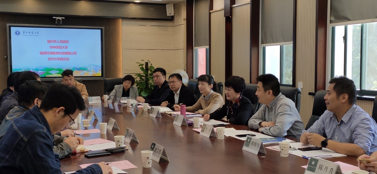 华大在线讯(通讯员 赵景辉)10月31日,我校同福州市人民政府、福德环球教育科技有限公司三方基础教育合作办学座谈会在行政楼三楼会议室举行。福州市人民政府副市长李春,福州市教育局局长唐希,福州市晋安区副区长张琴,市政府办公厅文教处处长蒋晓川、绩效处处长林衍,市教育局民管办主任陈丹升,晋安区教育局局长杨佳松,福德环球教育科技有限公司总裁赵言憓以及副校长蔡红生出席座谈会。福州市晋安区教育局、福德环球教育科技有限公司及我校合作办相关负责人参加座谈。座谈会议由合作办负责人主持。