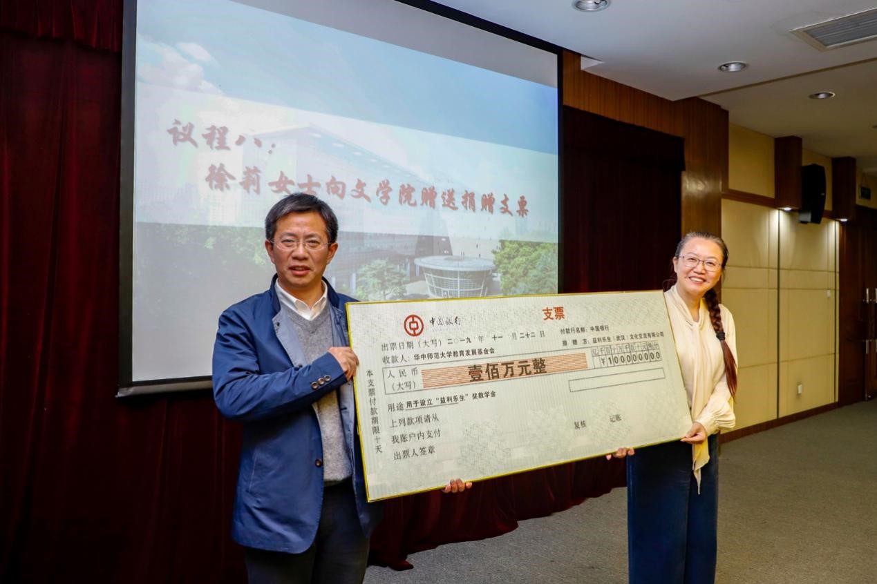 徐莉向文学院赠送捐赠支票