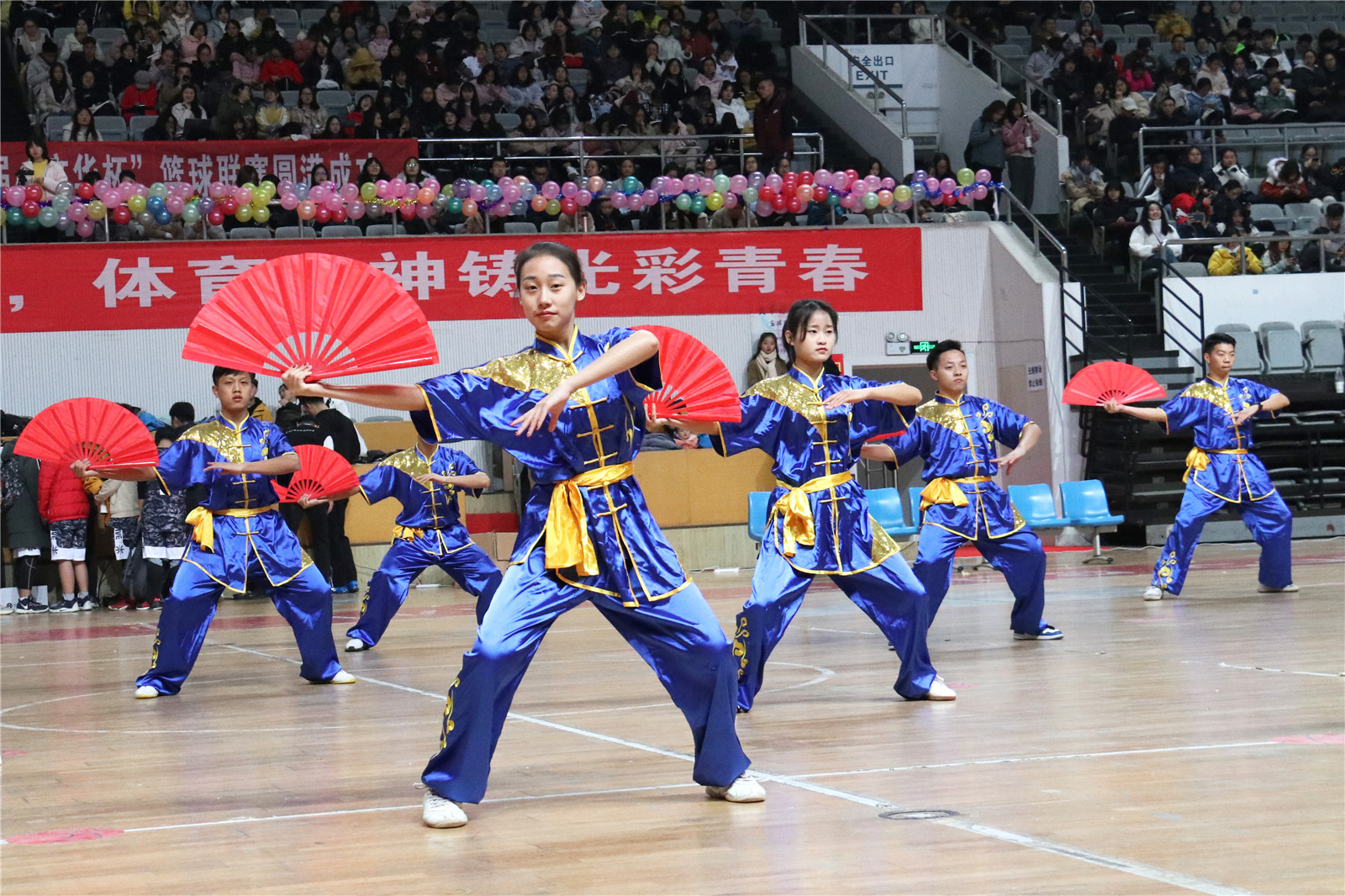开场表演环节,体育学院的武术表演及彩带舞展现了运动员们的青春活力,为观众带来了一场视听盛宴,花式扣篮与三分球表演博得观众掌声阵阵。文学院的舞蹈表演既突出了舞蹈的柔美,又饱含力量。