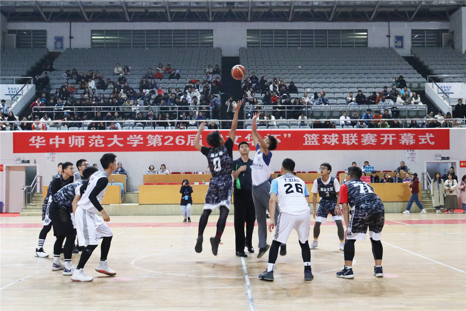 致辞结束后,彭双阶宣布我校第二十六届“文华杯”篮球赛开幕。