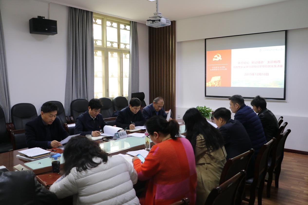 华大在线讯(通讯员 唐慧颖)12月10日,“不忘初心、牢记使命”主题教育马克思主义学院领导班子专题民主生活会召开。校党委书记赵凌云,学校“不忘初心、牢记使命”主题教育巡回指导第一组组长、副校长任友洲到会指导,学院全体领导参加,学院工会主席列席。会议由马克思主义学院党委书记孙永祥主持。