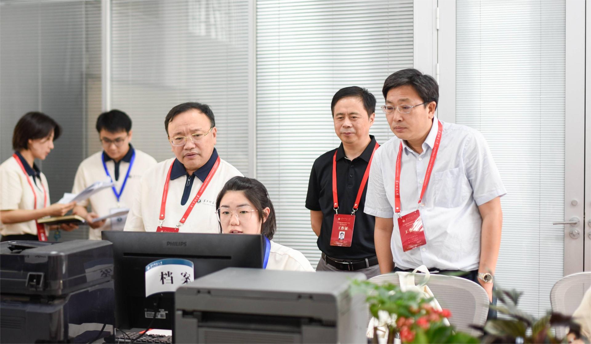 在本科招生录取现场,“阳光招生,科学选才”的标语突出醒目,教育部高校招生“十严禁”“30个不得”“八项基本要求”等规定悬挂于墙,清晰显眼。20余名工作人员分别坚守在招生咨询、系统录检、资格审查、数据处理等岗位,分工明确,流程紧凑,各项工作井然有序。夏立新一行与现场工作人员亲切交流,详细了解招生录取的工作流程,并就相关注意事项进行了交流。通过招生录取可视化数据大屏,本科生院相关负责人向校领导汇报了我校招生录取进度和生源质量等情况,重点介绍了首次招生的本研衔接公费师范生的招生录取等相关情况。