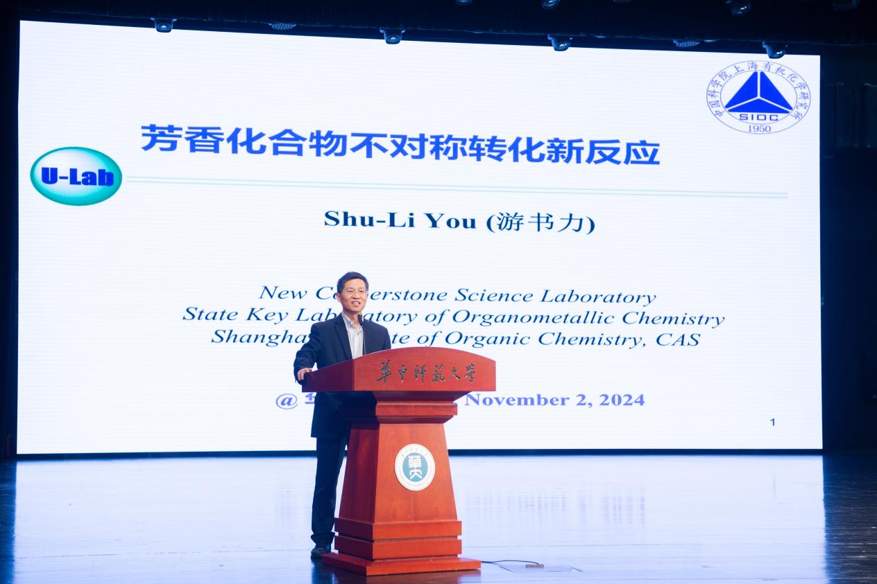 华大在线讯(通讯员 罗琼)11月2日,我校前沿交叉科学论坛暨化学学院第十六届研究生学术年会开幕式在大学生活动中心大礼堂举行。中国科学院院士、中科院上海有机所党委副书记(主持工作)、副所长游书力应邀作《芳香化合物不对称转化新反应》主题报告。副校长任友洲为游书力院士颁发主讲人聘书并致辞。学校有关职能部门负责人、化学学院党政领导班子成员出席活动。