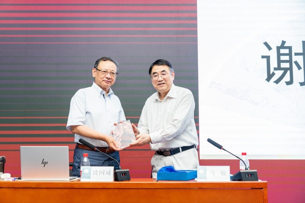中国近代史研究所所长马敏向沈国威赠予章开沅学术讲座纪念牌